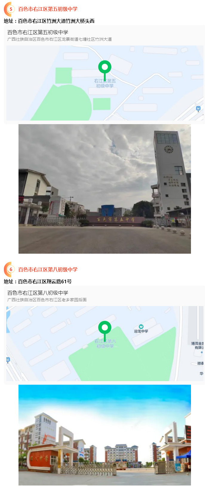 2.請?zhí)崆笆煜た键c地址,做好路線、住宿的安排。本次考試參考人數(shù)較多,考點分布分散,建議考生考前實地察看考點,確認考點入口位置,防止走錯考點。請充分考慮考點周邊交通通行情況和停車場地容量,合理安排出行方式,預留充足時間,確保考試當天按時到達。另外,考試期間百色市及各考點學校周邊的住宿比較緊張,請?zhí)崆邦A定。