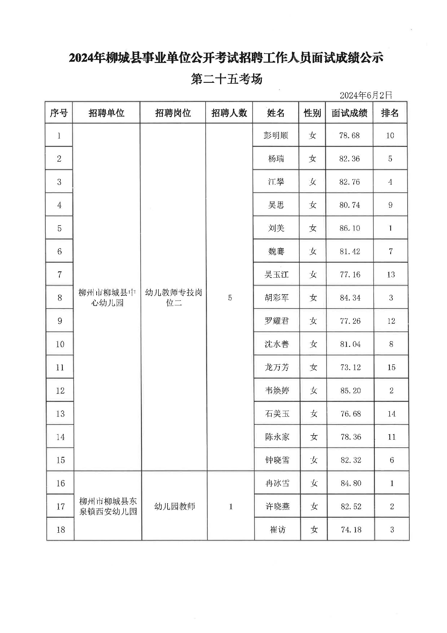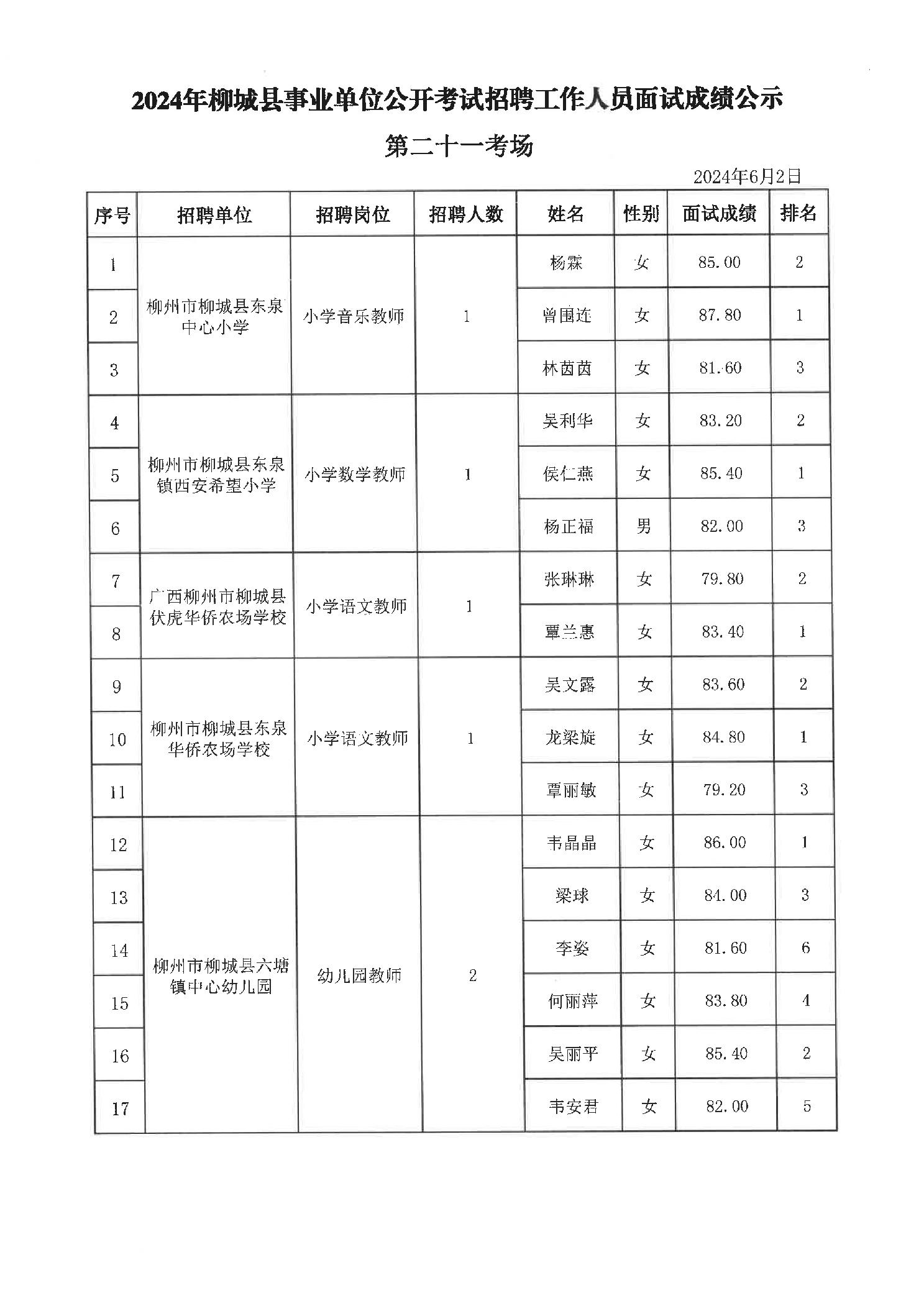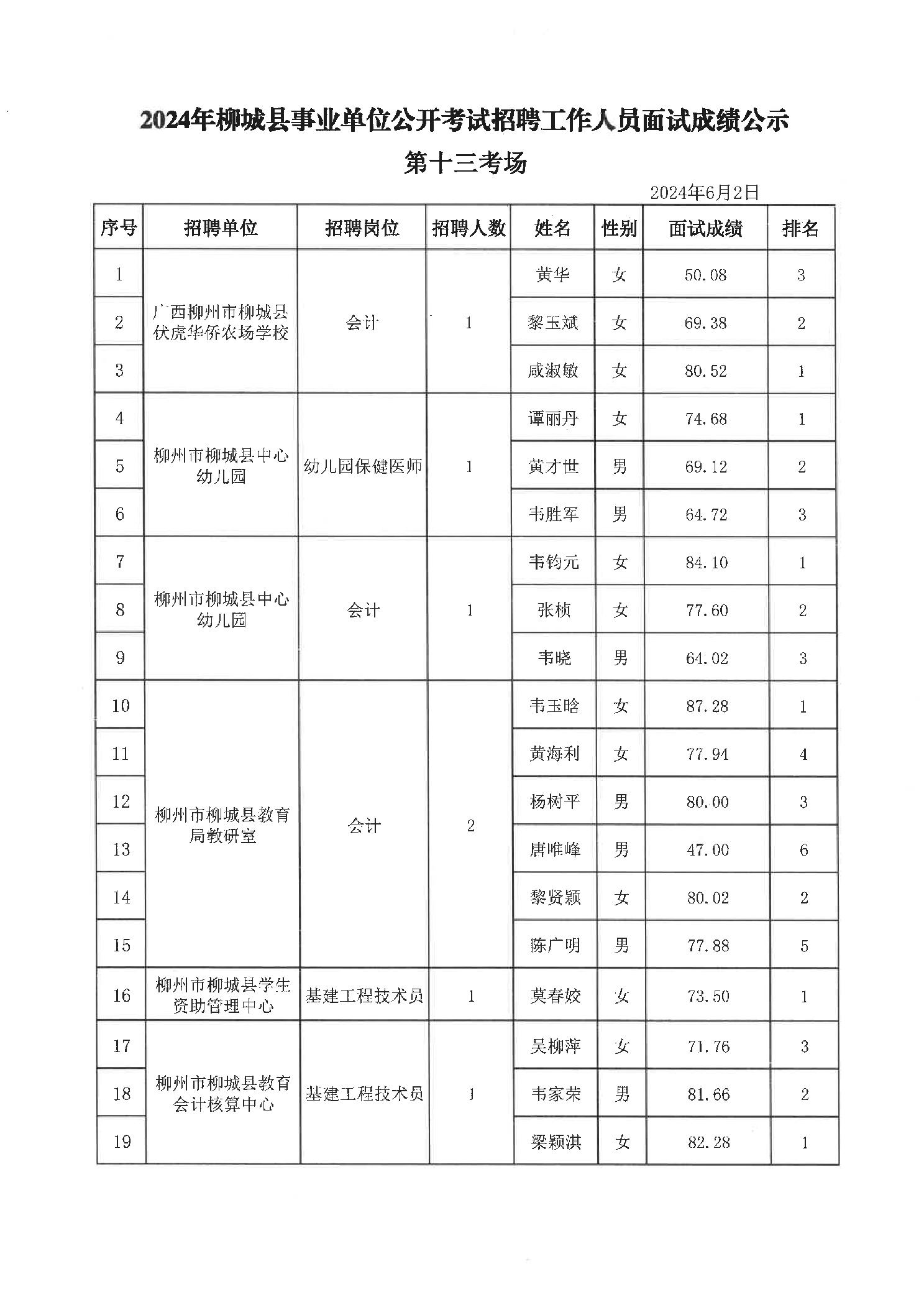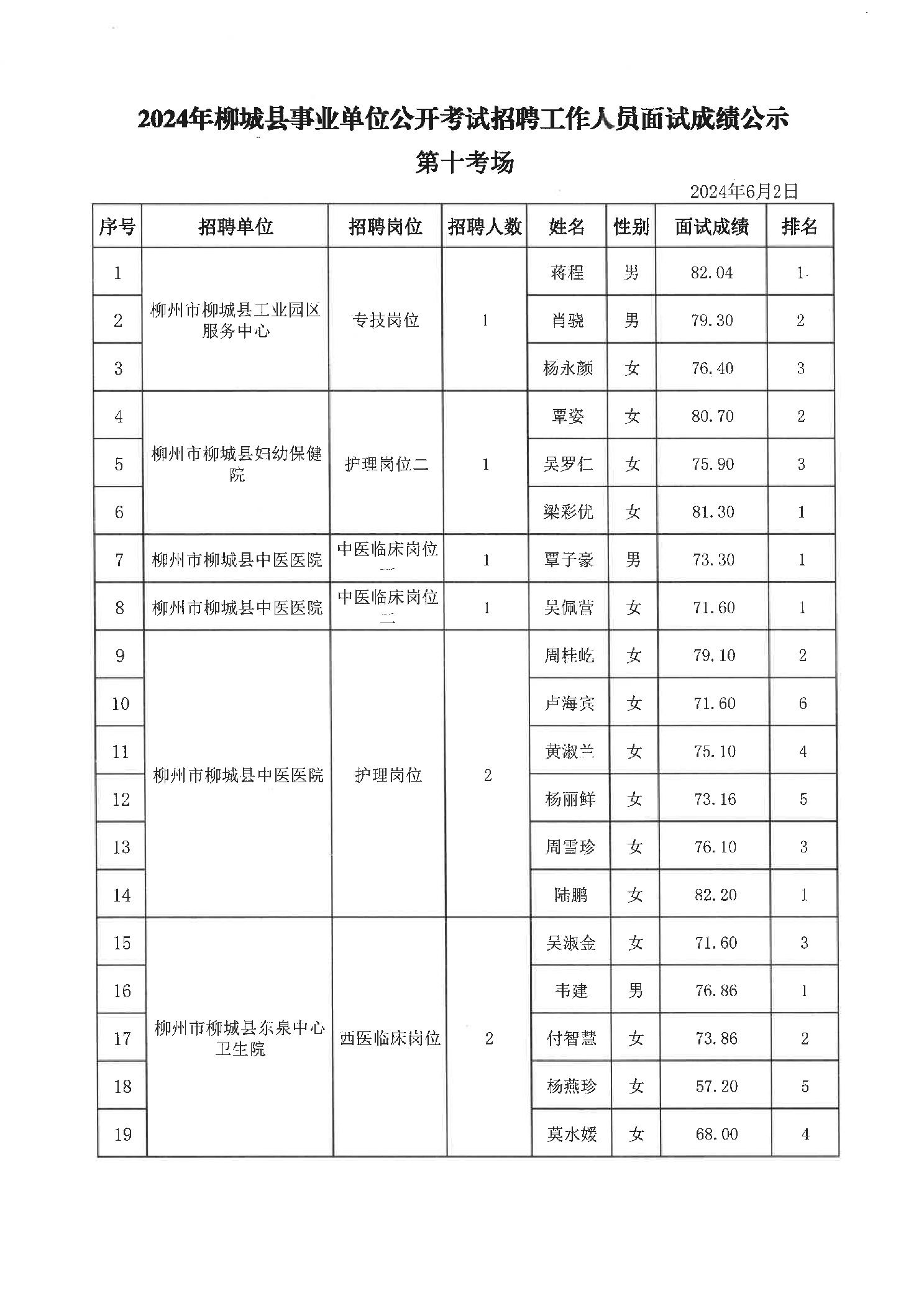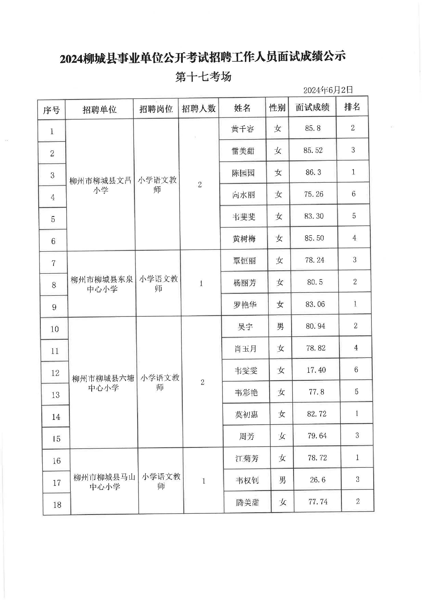 原文標(biāo)題:2024年柳州市事業(yè)單位公開考試招聘工作人員面試成績(jī)公示(柳城縣崗位)