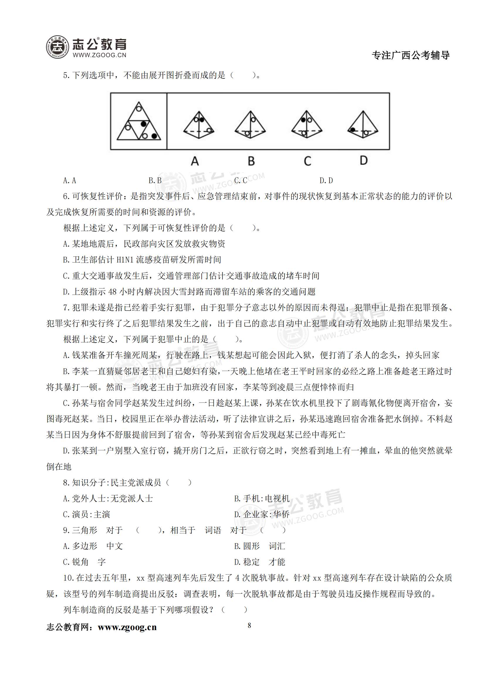 【公考模塊練習(xí)】判斷推理題二(試題)