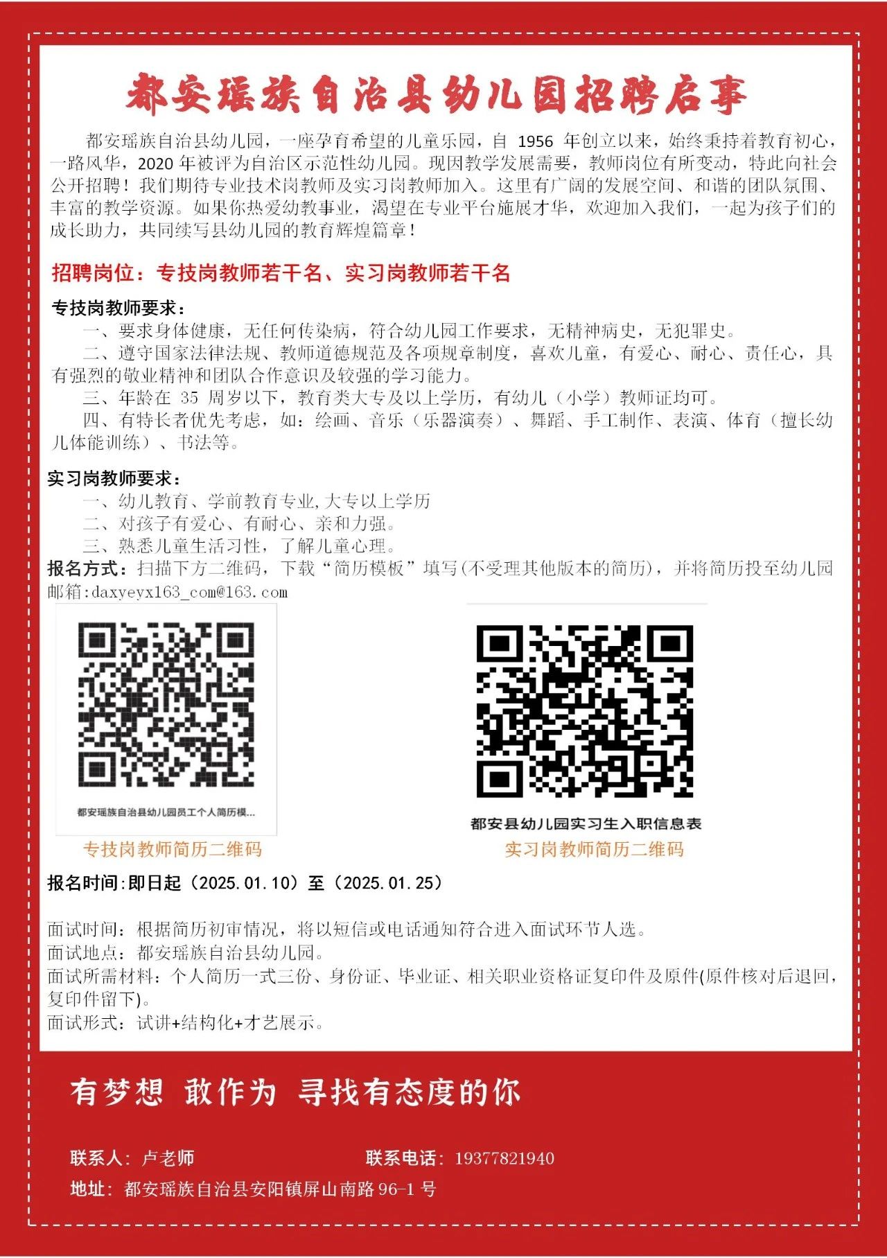 2025年河池都安瑤族自治縣幼兒園招聘啟事