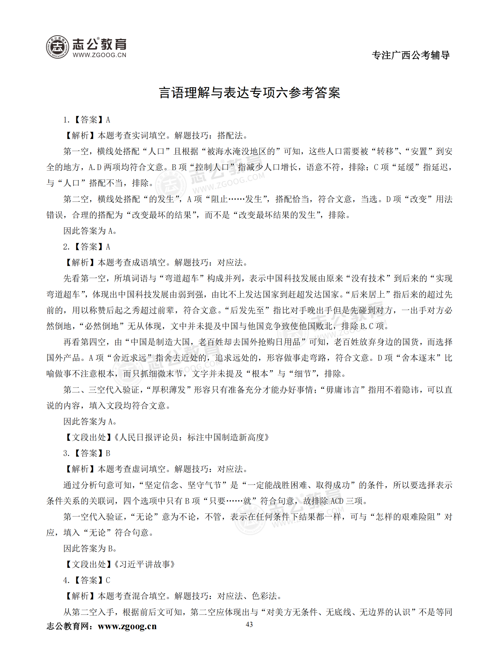 【公考模塊練習(xí)】言語(yǔ)理解題六(答案)