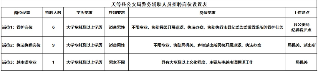 附件1:天等縣公安局警務輔助人員招聘崗位設置表
