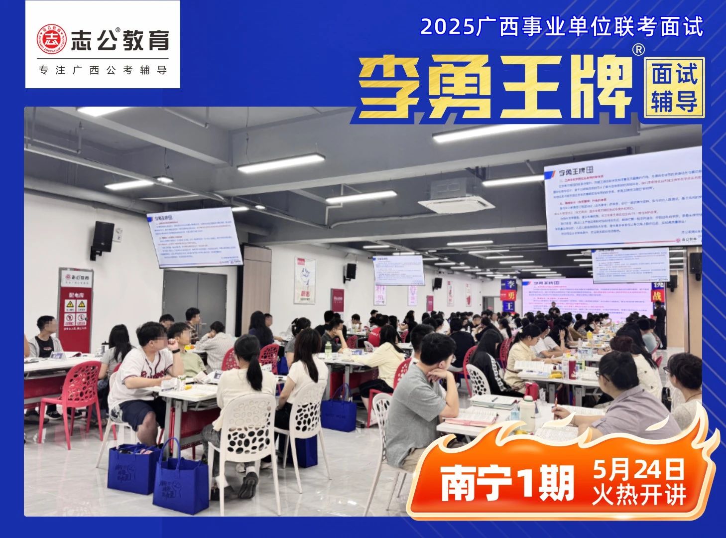 2025年廣西事業(yè)單位面試培訓(xùn)課程 —— 李勇王牌®班在學(xué)員們的熱切期待中正式開(kāi)班。學(xué)員們陸續(xù)簽到,為助力學(xué)員迅速適應(yīng)學(xué)習(xí)節(jié)奏,志公教育精心準(zhǔn)備了備考大禮包,內(nèi)含歷年課程講義、高分技巧等實(shí)用資料。班主任團(tuán)隊(duì)全程跟進(jìn),細(xì)致講解課程安排、考勤制度及學(xué)員服務(wù),從學(xué)習(xí)到生活,全方位為學(xué)員保駕護(hù)航。