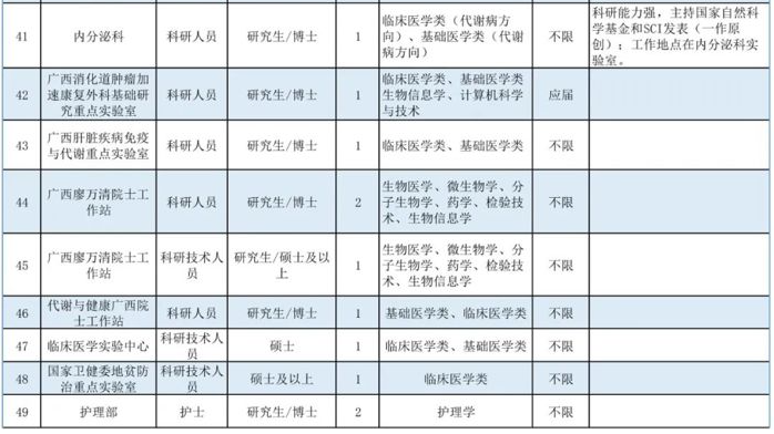 2.符合《廣西醫(yī)科大學(xué)第一附屬醫(yī)院高層次人才引進管理實施辦法》條件者,可按相關(guān)程序認(rèn)定,并享受安家費、科研啟動基金等優(yōu)厚待遇(詳見附件1)。