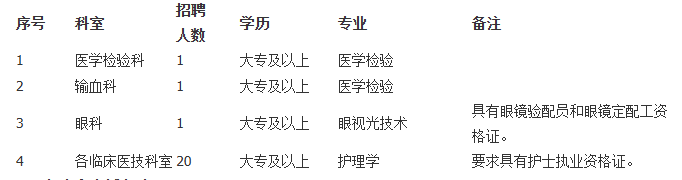 根據業(yè)務發(fā)展需要,現決定對外公開招聘合同制檢驗師、驗光師和護理人員若干名,勞務派遣到賀州市人民醫(yī)院從事輔助性崗位工作。凡有意向且符合報名條件者均可報名應聘,具體條件及招聘辦法如下: