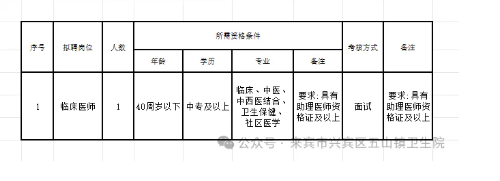 2.報名地點:來賓市興賓區(qū)五山鎮(zhèn)衛(wèi)生院辦公室。
