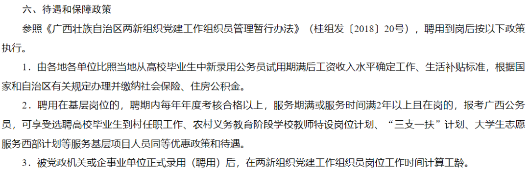 如果是符合條件的黨員朋友可要抓住這次機會了??,不僅“由各地各單位比照當?shù)貜母咝.厴I(yè)生中新錄用公務員試用期滿后工資收入水平確定工作、生活補貼標準,根據(jù)國家和自治區(qū)有關規(guī)定辦理并繳納社會保險、住房公積金。”服務期滿還參照三支一扶等服務基層項目人員同等優(yōu)惠政策和待遇,而且!這個考試只用筆試,不用面試,香,實在是太香了!