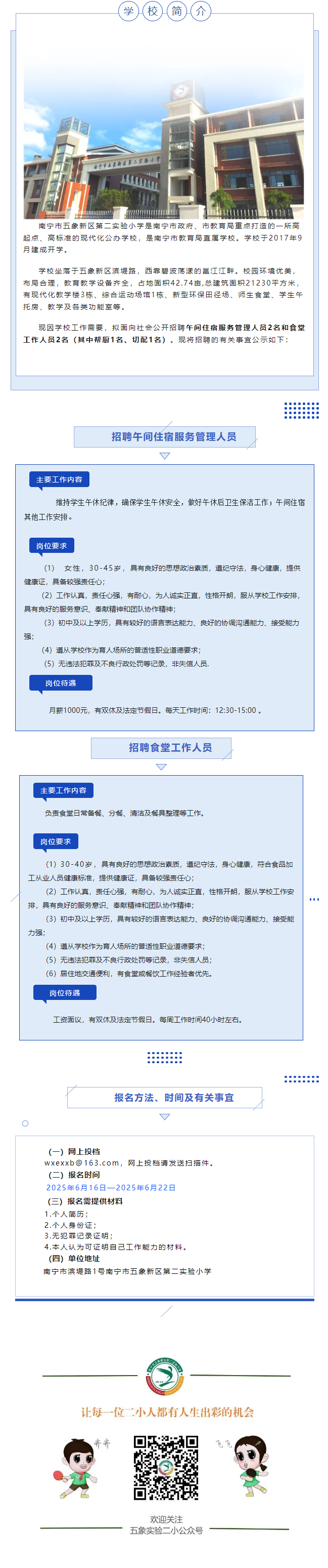 原文標(biāo)題:南寧市五象新區(qū)第二實驗小學(xué)招聘公告