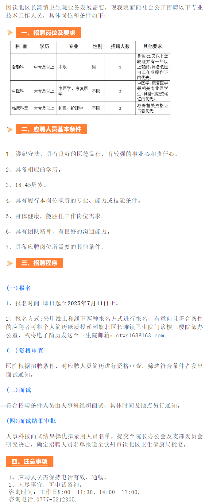 原文標(biāo)題:欽北區(qū)長灘鎮(zhèn)衛(wèi)生院關(guān)于招聘2025年編外人員的公告