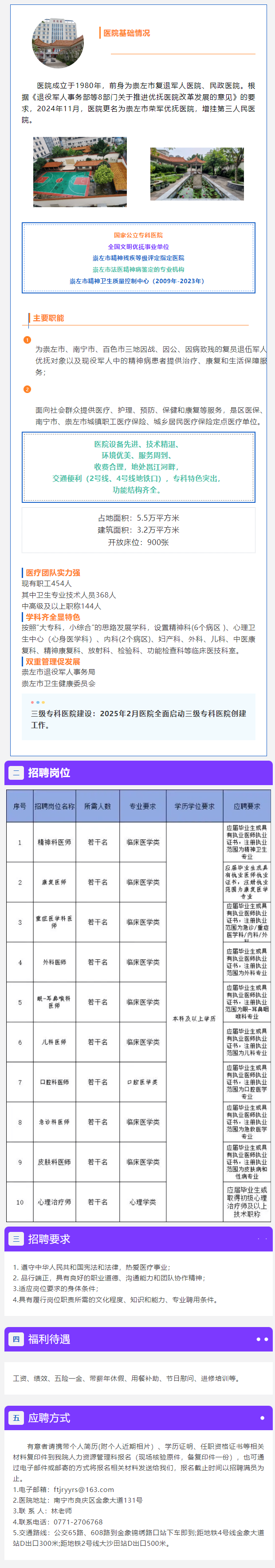 原文標(biāo)題:招賢納士,“職”等你來! 崇左市榮軍優(yōu)撫醫(yī)院招聘公告
