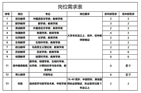學科教師招聘條件: