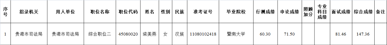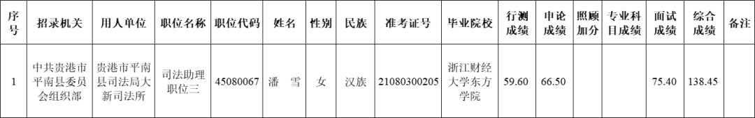 6.6 貴港市司法局2025年度考試錄用公務(wù)員擬錄用人員名單