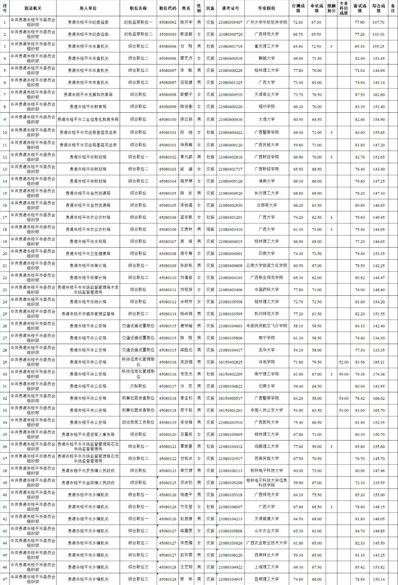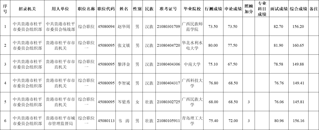6.6 貴港市桂平市2025年度考試錄用公務(wù)員擬錄用人員名單(一)
