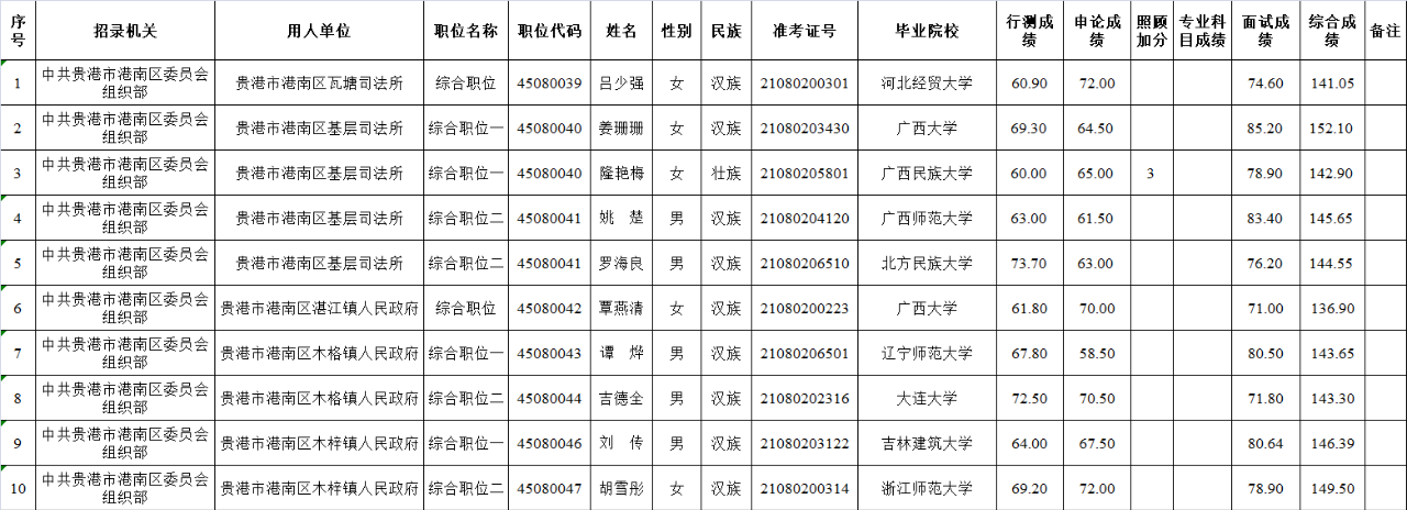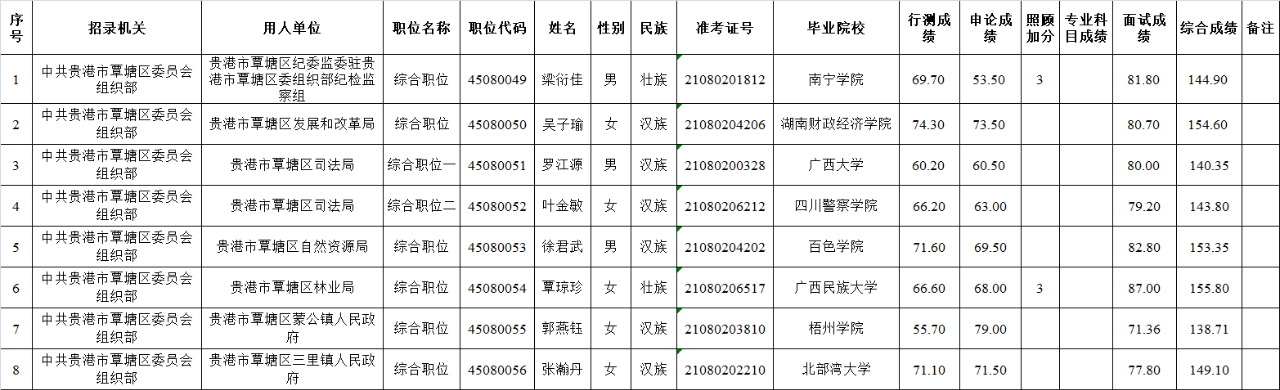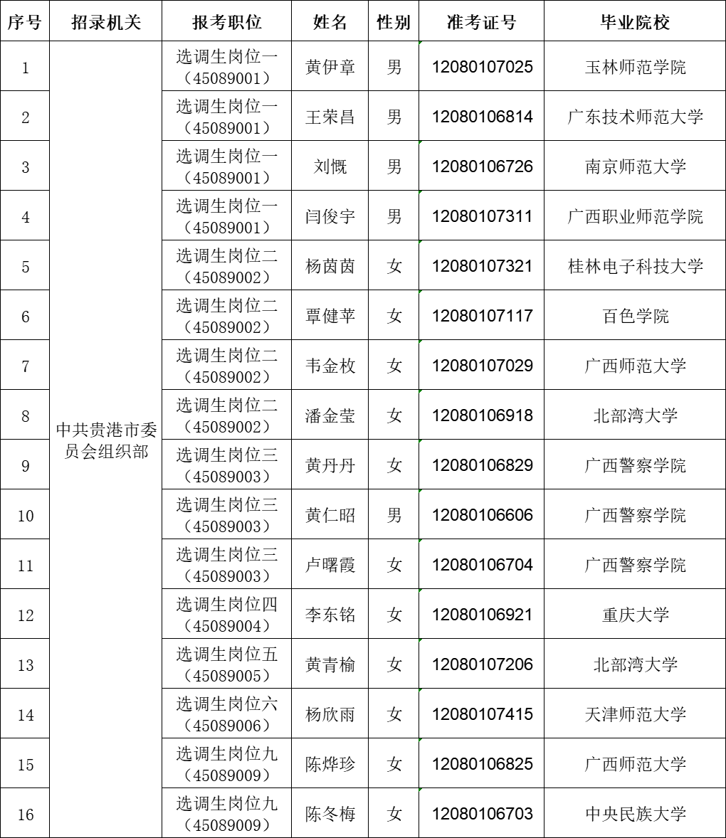 6.17 貴港市2025年從應(yīng)屆優(yōu)秀大學(xué)畢業(yè)生中招錄選調(diào)生擬錄用人員公示