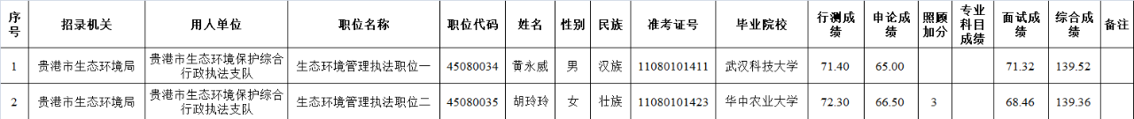 6.6 貴港市生態(tài)環(huán)境局2025年度考試錄用公務(wù)員擬錄用人員名單