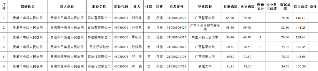 6.6 貴港中級(jí)人民法院2025年度考試錄用公務(wù)員擬錄用人員名單