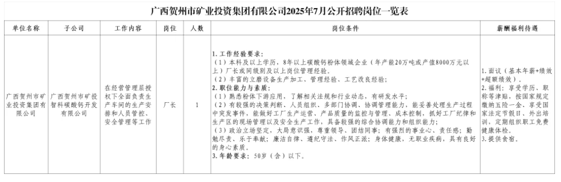 1.廣西賀州市礦業(yè)投資集團(tuán)有限公司2025年7月公開(kāi)招聘崗位一覽表