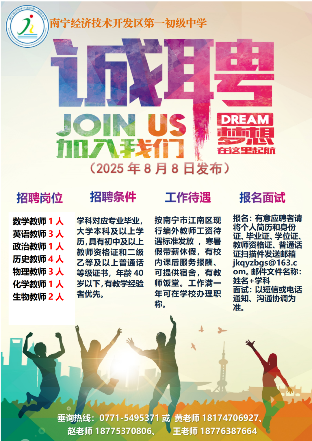 2025年秋季學(xué)期南寧經(jīng)濟(jì)技術(shù)開發(fā)區(qū)第一初級中學(xué)公開招聘編外教師15人
