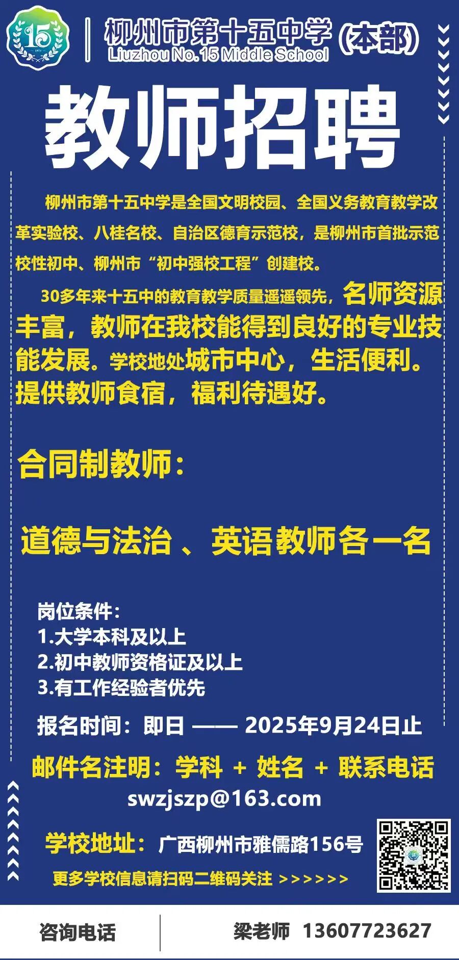 2025年柳州市第十五中學(xué)本部招聘公告