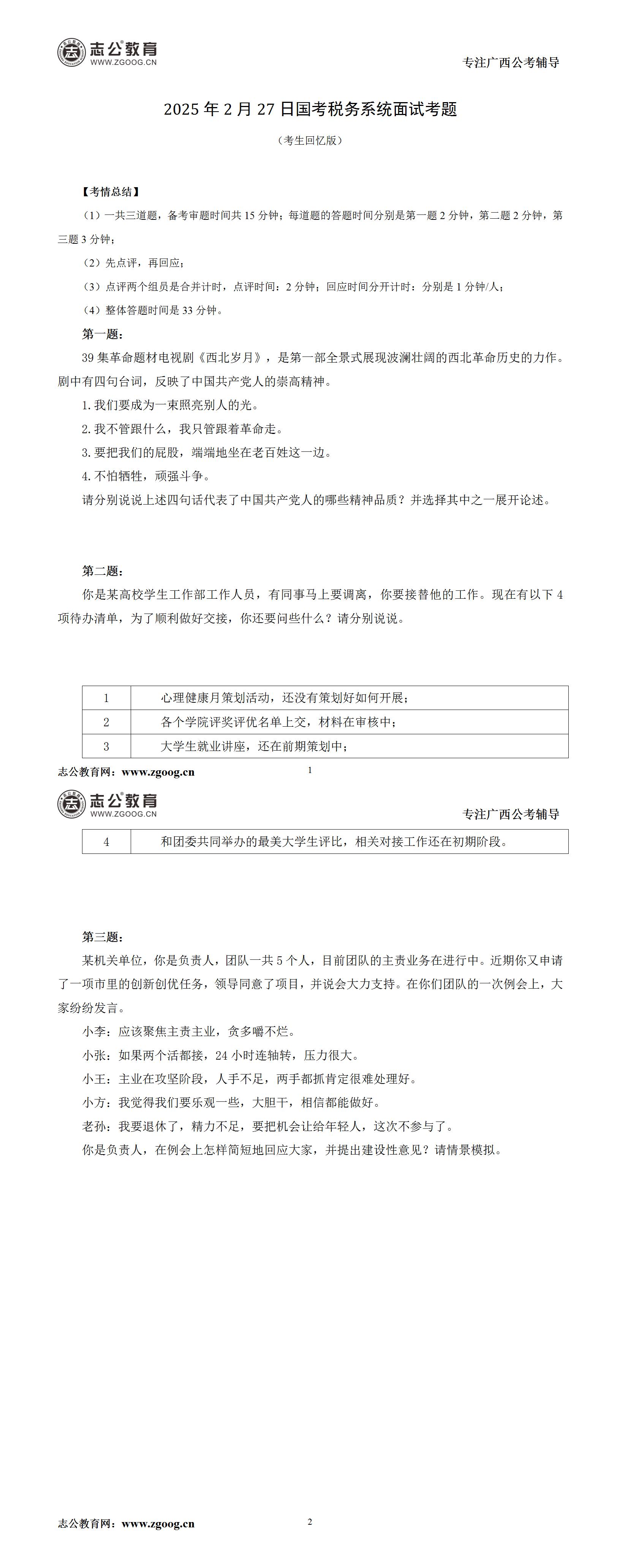 2025年國(guó)考稅務(wù)系統(tǒng)2月27日面試考題(考生回憶版)