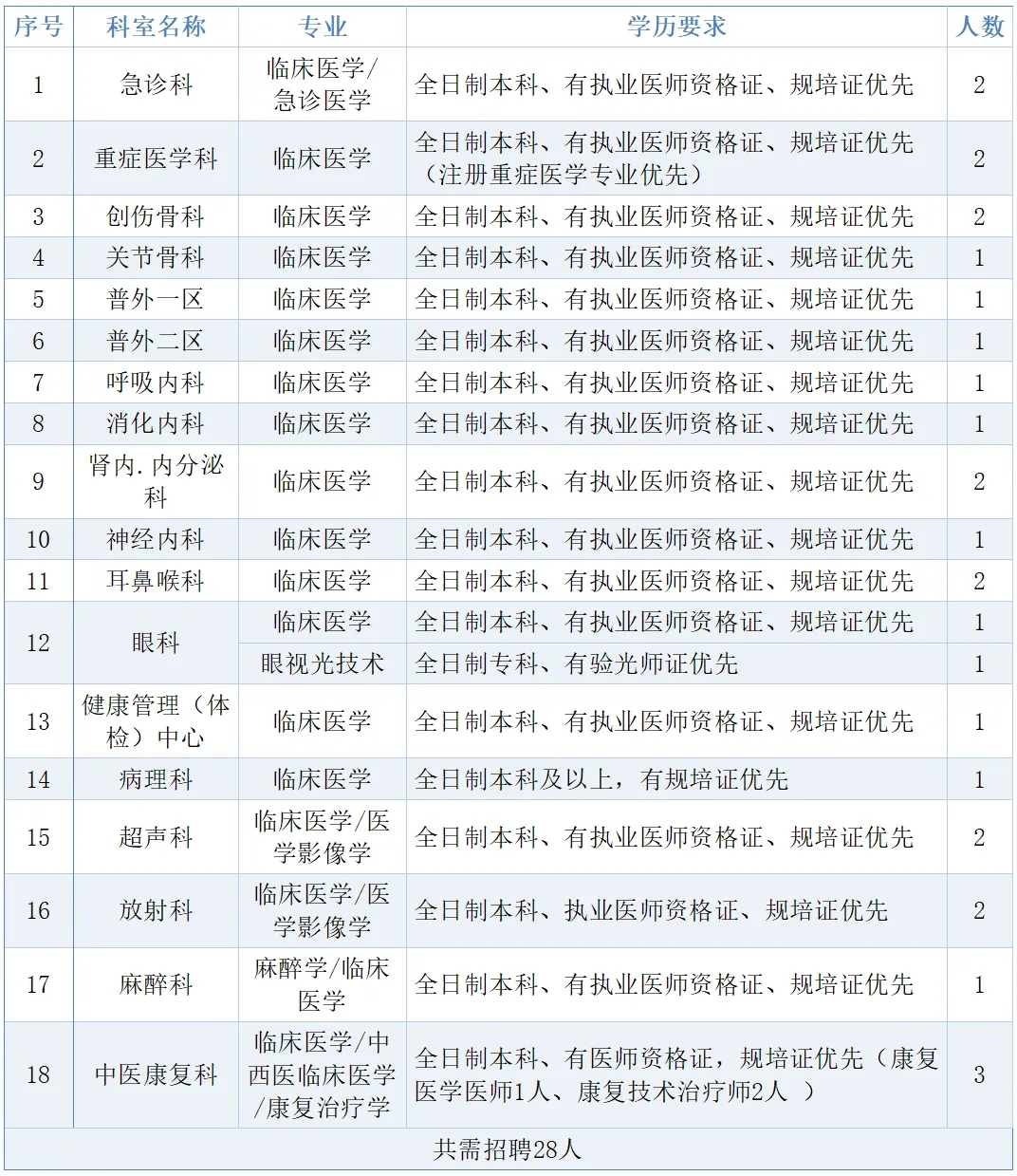 為了促進(jìn)醫(yī)院醫(yī)療業(yè)務(wù)發(fā)展,擬招聘醫(yī)學(xué)類各專業(yè)技術(shù)人員, 招聘細(xì)則如下: