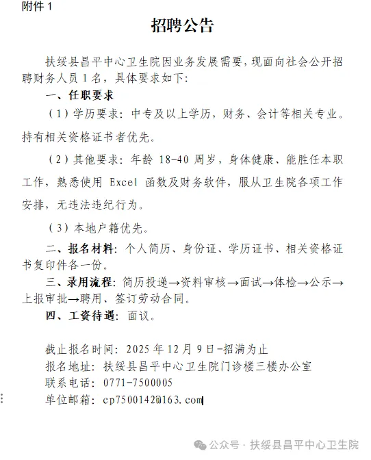 原文標題:2025年崇左扶綏縣昌平中心衛(wèi)生院公開招聘財務(wù)工作人員1人