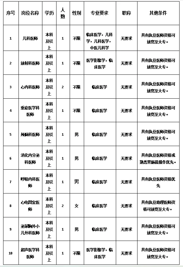 (三)面試時間及所需材料:資格審查通過后,即組織面試,時間以正式通知為準(zhǔn),不入圍者,不另行通知。面試時需攜帶身份證、畢業(yè)證、執(zhí)業(yè)證、資格證等原件進(jìn)行核驗。
